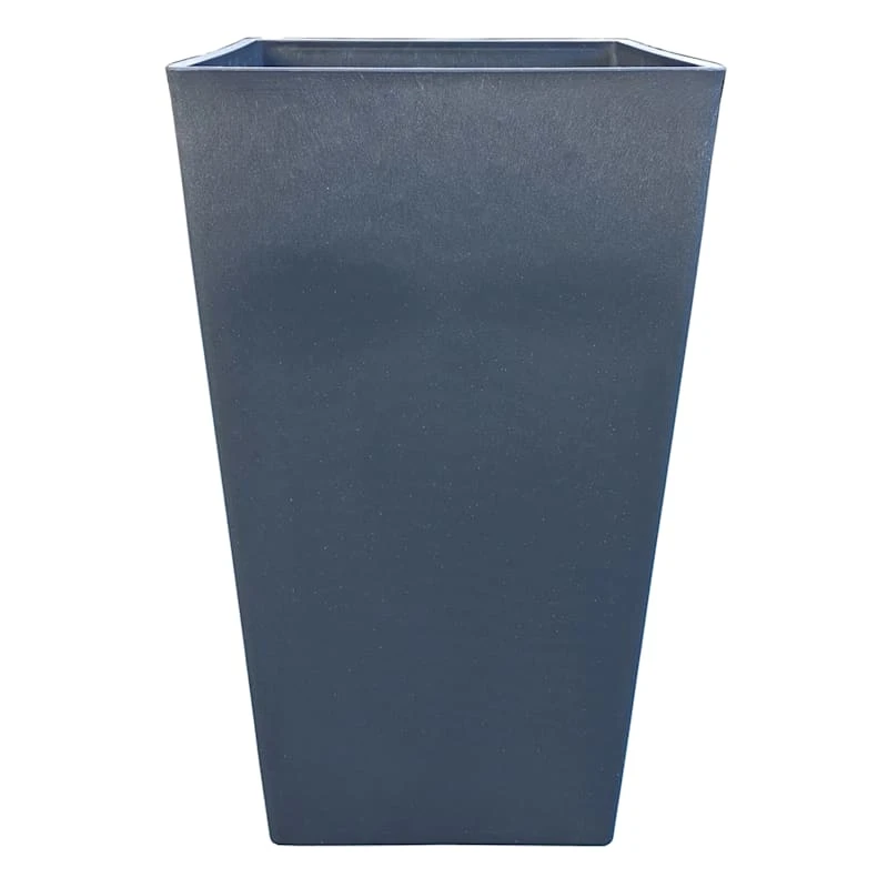 Highlight your green thumb and showcase your annuals and perennials at your front door or add a touch of festive foliage to the deck with our simple yet stylish planter. More than just a spot to display your gardening skills, this wonderful 21in. tall square silver planter offers a wonderful artistic appearance with its simple solid surface and angled square structure. Designed to live indoors or on a covered patio, this grey plastic pot is ready and waiting to make your plants pop.