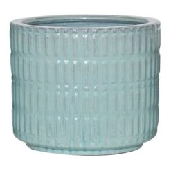 Highlight your green thumb and showcase your annuals and perennials at your front door or add a touch of festive foliage to the deck with our simple yet stylish planter. More than just a spot to display your gardening skills, this wonderful 10in. textured teal ceramic pot offers a wonderful artistic appearance with its traditional cylindrical body and separated stripe surface. Designed to live indoors or on a covered patio, this glazed ceramic planter is ready and waiting to make your plants pop.