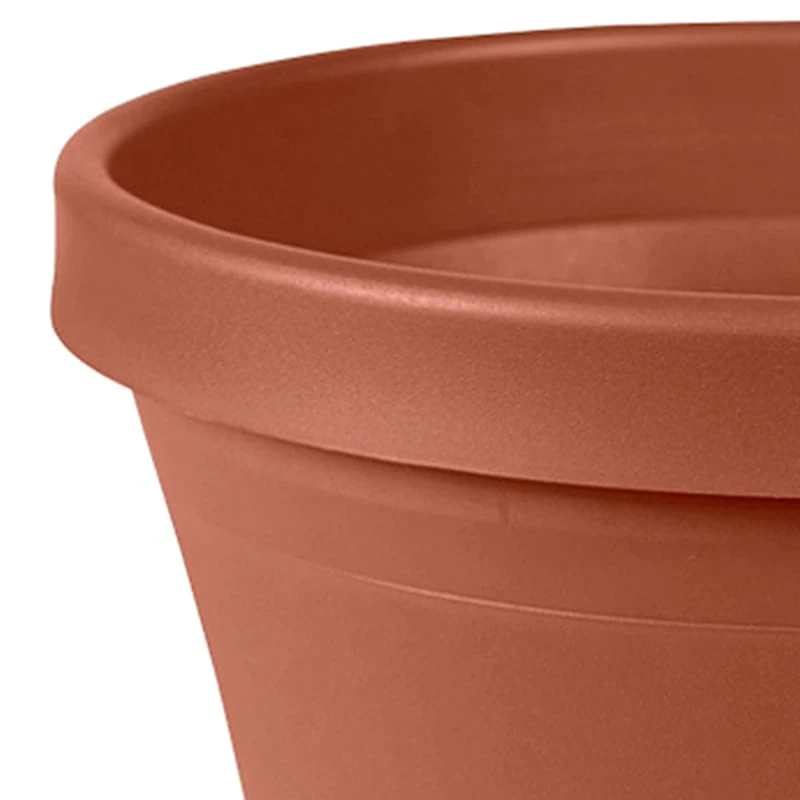 Highlight your green thumb and showcase your annuals and perennials at your front door or add a touch of festive foliage to your covered deck with our stylish 16in. terracotta plastic pot. More than just a spot to display your gardening skills, this solid color planter offers a sleek, traditional appearance with its wonderful design. Created to live indoors, outdoors or in a covered outdoor space, it’s ready to make your plants pop.