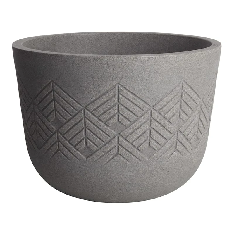 Highlight your green thumb and showcase your annuals and perennials at your front door or add a touch of festive foliage to the deck with our simple yet stylish planter. More than just a spot to display your gardening skills, this wonderful 20.5in. Tribe stone-look planter offers a wonderful artistic appearance with its simple stone-look surface and etched geometric tribal motif. Designed to live indoors or on a covered patio, this natural hued synthetic pot is ready and waiting to make your plants pop.