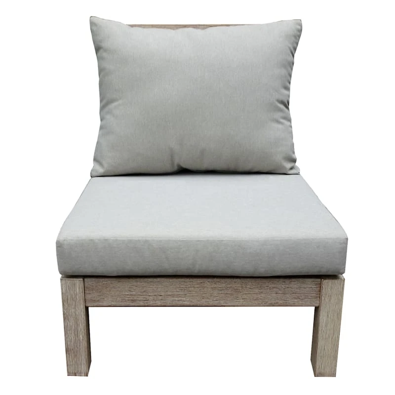 A jack of all trades, including graphic designer, carpenter, contractor, author and beloved reality TV host, Ty Pennington has created a new and exclusive collection for At Home. Create a relaxing oasis in your backyard where you can just hang and chill. Our Big Sur outdoor armless lounge chair is made of natural wood and grey polyester upholstered cushions in a neutral summer shade perfect for your outdoor space. An interesting modern design, this lounger will be welcome in any outdoor space.