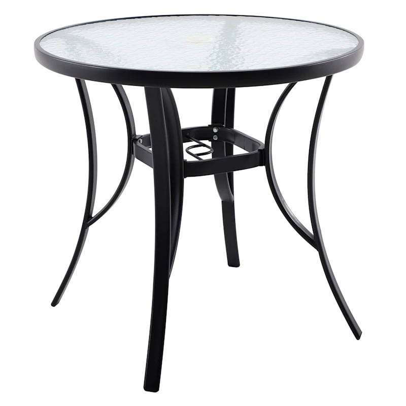 Our black steel 30in. round dining table with tempered glass top is perfect for any outdoor space. The color is neutral to complement other existing furniture collections. The simple, traditional design is exactly the right combination for your deck, porch or garden. Sit down and enjoy a relaxing cocktail, or have a quiet meal outside. Good times ahead!