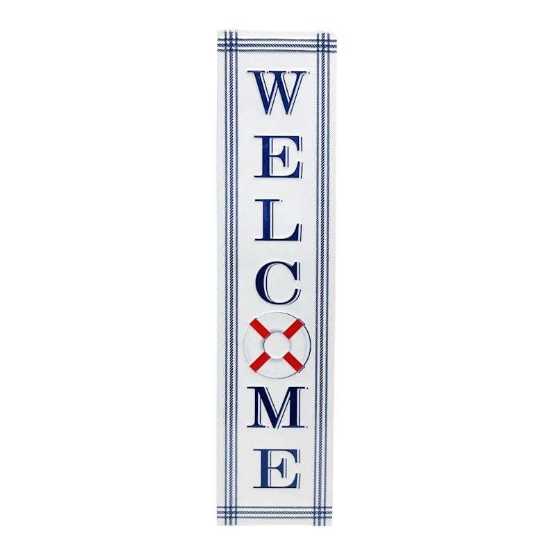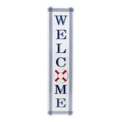 Add a pinch of fun to your garden with our 42in. metal “Welcome” wall sign. Created with love, this wonderful piece features a white, and blue nautical motif. Everyone will enjoy the nice welcome. Made of painted metal, this wall decor is designed to greet guests all season long.