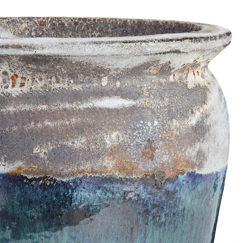 White & Aqua Acadia Ceramic Planter, 20.9"