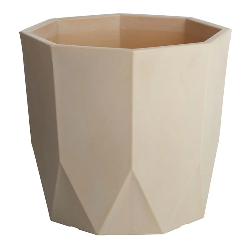 Highlight your green thumb and showcase your annuals and perennials at your front door or add a touch of festive foliage to the deck with our simple yet stylish planter. More than just a spot to display your gardening skills, this wonderful 16in. Merino antique white planter offers a wonderful artistic appearance with its solid matte surface and faceted shape. Designed to live indoors or on a covered patio, this synthetic natural hued planter is ready and waiting to make your plants pop.