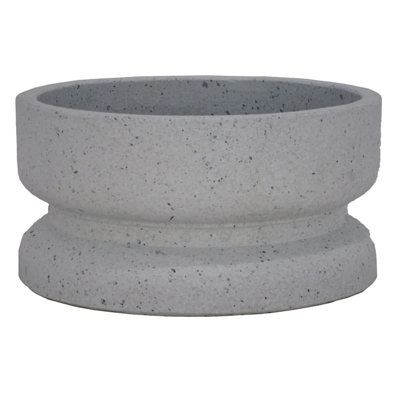 Don’t leave your fabulous foliage relegated to the garden! Add a dash of architectural and botanical beauty to your porch, patio or sunroom with our mid-mod terrazzo speckled low bowl pedestal planter. Designed to live both indoors and out, this 6x12in. pot is crafted of weather-resistant synthetic material that stands up to the UV light shining down, rainstorms and regular watering.
