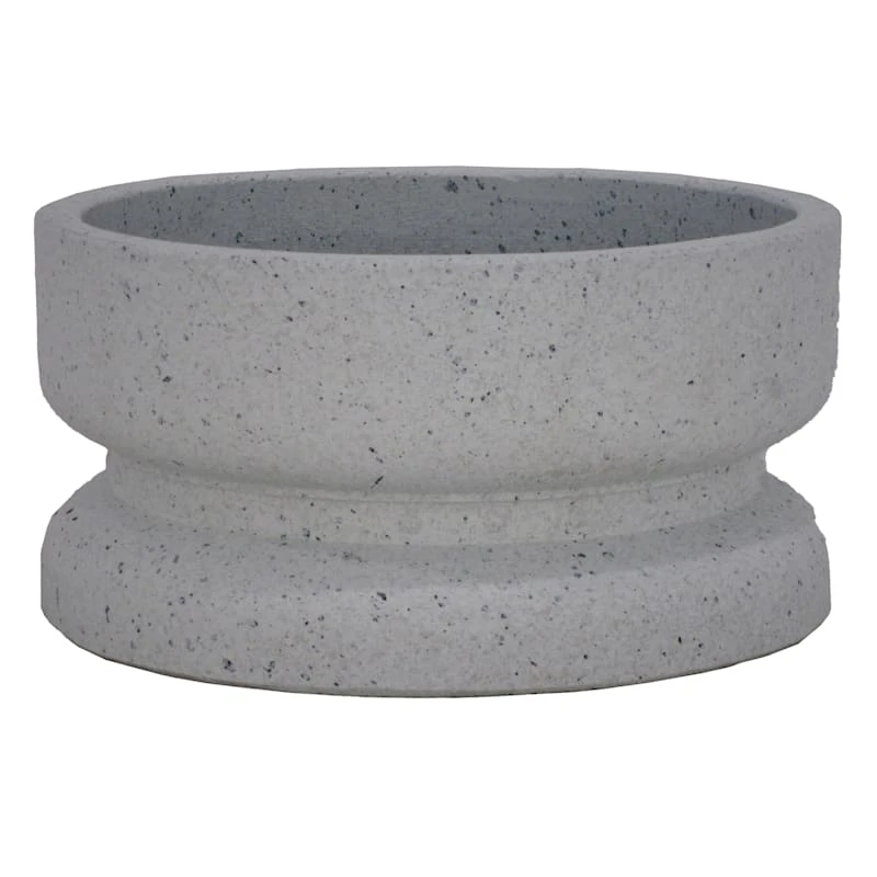 Don’t leave your fabulous foliage relegated to the garden! Add a dash of architectural and botanical beauty to your porch, patio or sunroom with our mid-mod terrazzo speckled low bowl pedestal planter. Designed to live both indoors and out, this large 8x16in. pot is crafted of weather-resistant synthetic material that stands up to the UV light shining down, rainstorms and regular watering.