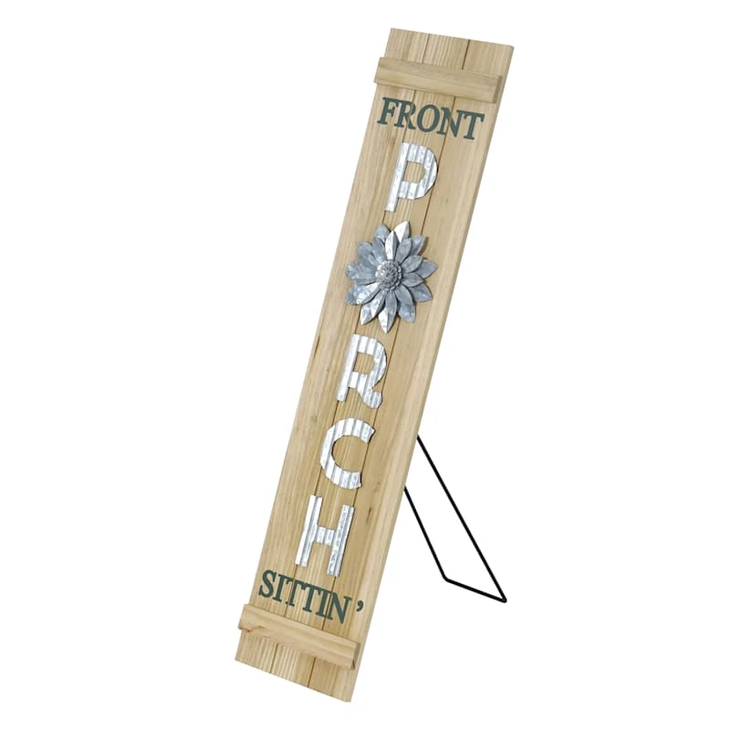 Add a pinch of fun to your garden with our 32in. wooden “Front Porch Sittin’” sign. Created with love, this large simple hued sign features a welcoming message for all visitors. Everyone will enjoy the nice message. Made of wooden slats and metal details, this wall decor/ leaner is designed to greet guests all season long.